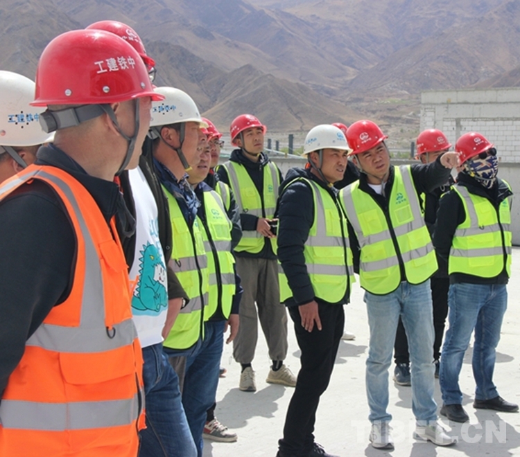 圖為張磊(右二)帶領施工人員在西藏自治區(qū)醫(yī)院項目施工開展現(xiàn)場檢查