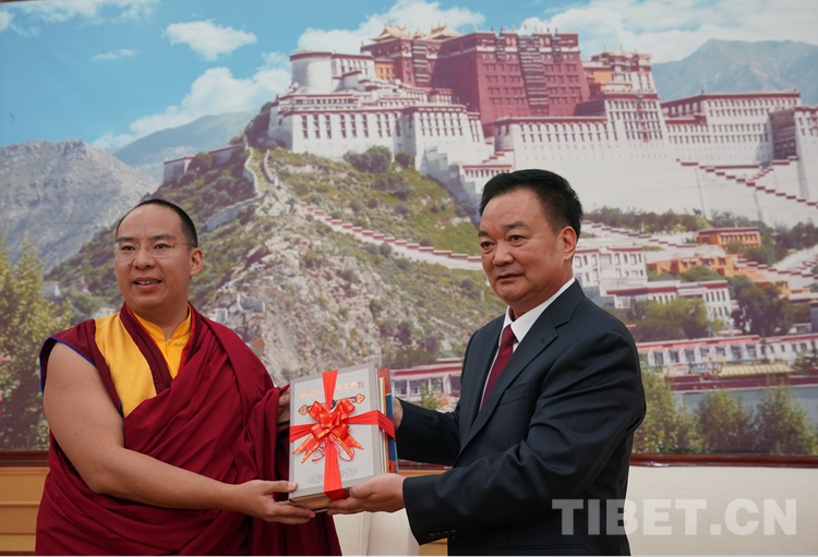 西藏自治區(qū)領(lǐng)導(dǎo)洛桑江村、莊嚴(yán)、陳永奇、嘎瑪澤登、達(dá)娃次仁、甲熱·洛桑丹增、珠康·土登克珠、薩龍·平拉、索朗仁增陪同會(huì)見(jiàn)。(中國(guó)西藏網(wǎng) 記者/王淑 拉姆)