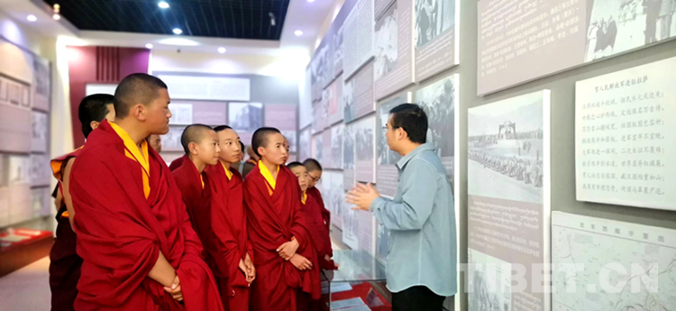 在譚冠三紀念園參觀時,少年活佛在譚冠三將軍陵墓前集體默哀并敬獻花朵,向革命先輩致以崇高敬意。隨后,在紀念園相關(guān)負責人的講解下認真傾聽譚冠三將軍扎根邊陲、艱苦奮斗的感人事跡。參觀期間,少年活佛們被一幅幅圖片、一個個生動故事深深吸引,對革命先烈和十八軍戰(zhàn)士在解放西藏、建設(shè)西藏中形成的“老西藏精神”有了更加深刻的領(lǐng)會。