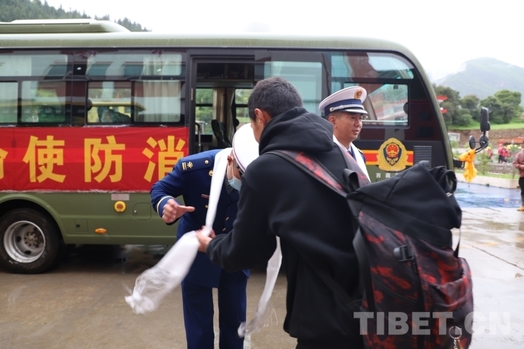 圖為校方為森林消防隊(duì)員獻(xiàn)上哈達(dá)
