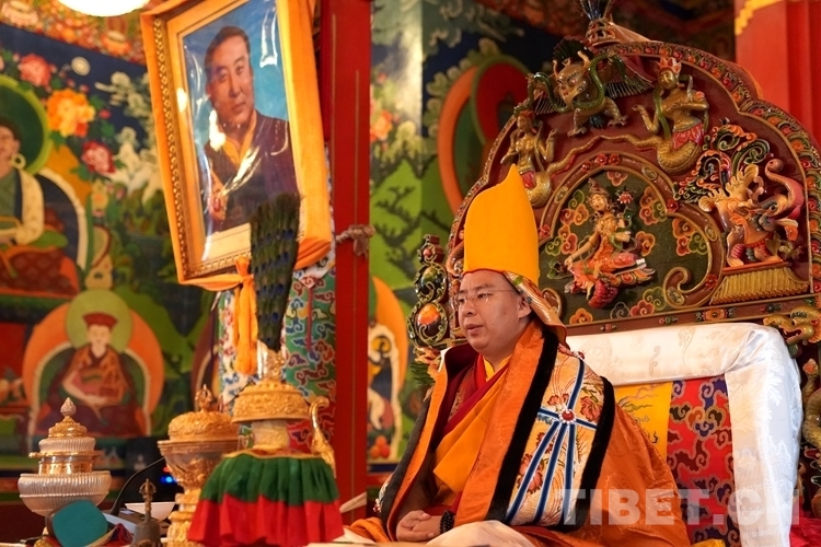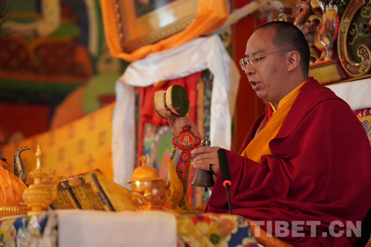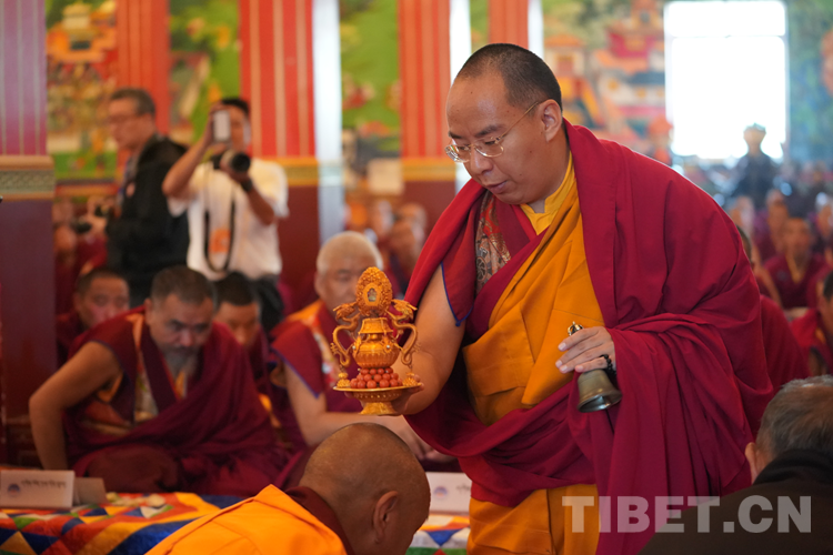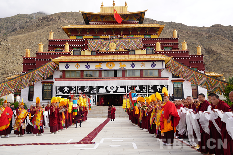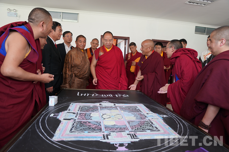 中國西藏網(wǎng)訊 近日,全國政協(xié)常委、中國佛教協(xié)會副會長、中國佛教協(xié)會西藏分會會長班禪額爾德尼?確吉杰布來到位于西藏自治區(qū)拉薩市曲水縣的西藏佛學院考察調(diào)研,為“建設美麗幸福西藏 共圓偉大復興夢想”石碑揭牌,為學員講經(jīng)授法、進行長壽灌頂,并為僧尼摸頂賜福。
