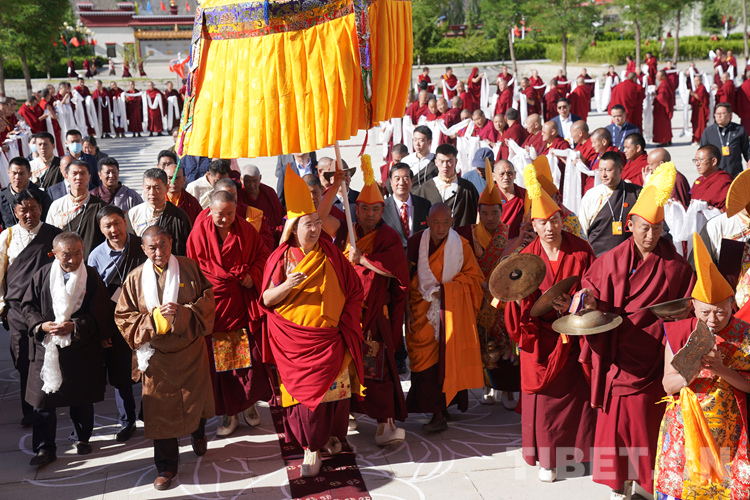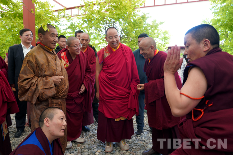 班禪表示,今天來到學院看到無論是硬件上、軟件上,都功德具足、法喜圓滿。我想一切的外在條件都已經(jīng)萬事俱備,只需要我們?nèi)w師生奮發(fā)圖強,珍惜把握學習時光?!白8W院師生們健康長壽,用我們現(xiàn)有的人生為祖國、為民族、為中國特色社會主義的建設、為藏傳佛教中國化做出更多的貢獻。祝愿大家六時吉祥、十相自在、功德圓滿!”