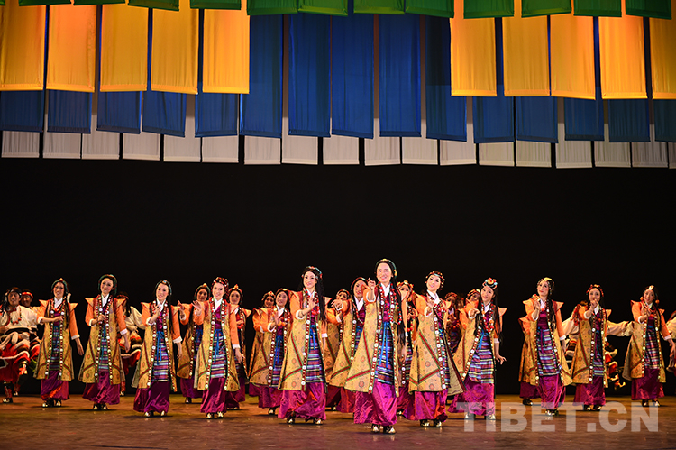 這是班戈縣諧欽民間藝術(shù)團(tuán)的年輕舞蹈演員在北京國(guó)家大劇院演出時(shí)的劇照(唐召明2015年10月13日攝)