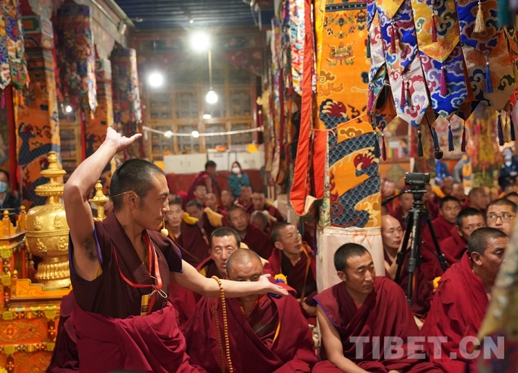 圖為2023年度西藏自治區(qū)藏傳佛教學(xué)經(jīng)僧人晉升格西拉讓巴學(xué)位夏季預(yù)考現(xiàn)場(chǎng) 攝影:王淑