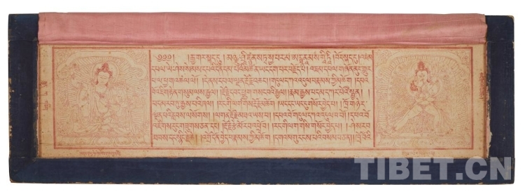 推崇藏傳佛教是清政府治理蒙藏地區(qū)的政治需要,同時(shí)也促進(jìn)了各民族文化的交流與交融?!洞蟛亟?jīng)?甘珠爾》該版藏經(jīng)系清王室官刻本,纂輯、刻印都是由官方主持??淘?、裝幀頗為精良,版型較一般藏文經(jīng)大,每夾扉畫均為手工繪制,筆觸細(xì)膩,設(shè)色鮮麗,大多出自藏族畫家手筆,為佛教文化研究不可缺的資料??滴醯蹫榇擞H撰《御制番藏經(jīng)序》,序文稱,刊印本藏是為“廣崇大藏”。