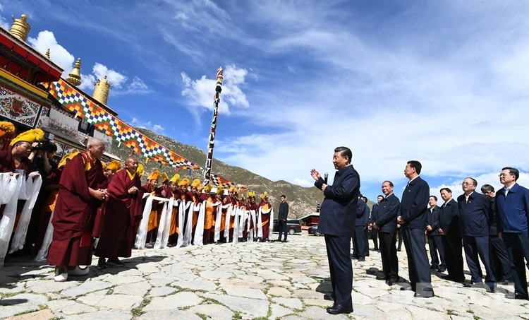 習(xí)近平總書記在哲蚌寺仔細(xì)察看了措欽大殿,認(rèn)真聽取西藏自治區(qū)宗教工作開展情況和哲蚌寺管委會(huì)加強(qiáng)創(chuàng)新寺廟管理工作情況的匯報(bào),并在大殿廣場(chǎng)發(fā)表重要講話。