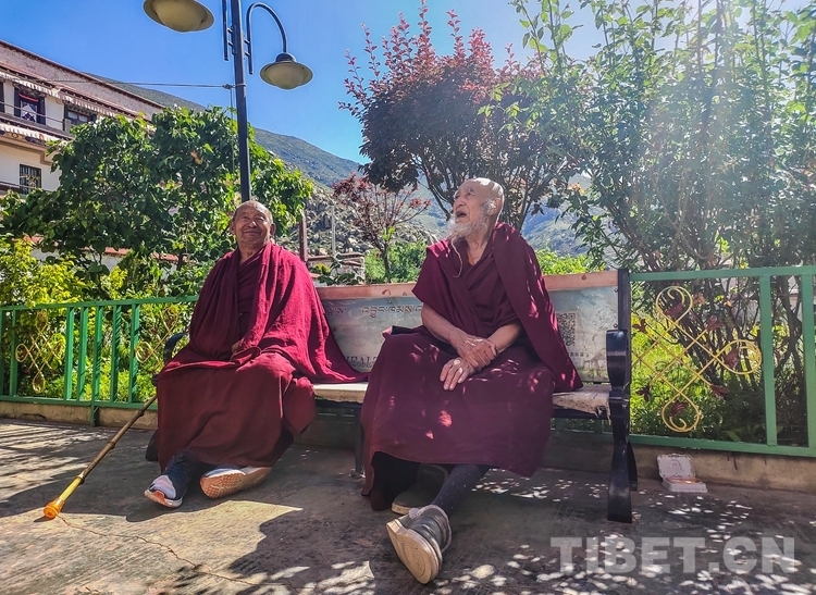圖為僧人在寺廟養(yǎng)老院內(nèi)曬太陽(yáng)。攝影:拉姆