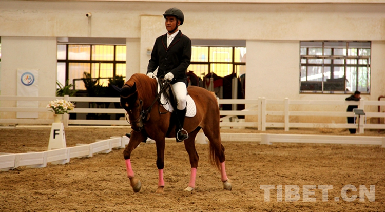 圖為在拉薩分賽場(chǎng)西藏自治區(qū)第十三屆運(yùn)動(dòng)會(huì)舉行的馬術(shù)項(xiàng)目盛裝舞步比賽 攝影:德吉卓嘎