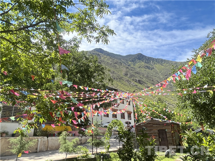 走進位于西藏自治區(qū)昌都市芒康縣曲孜卡鄉(xiāng)達許村的格?;▓@農(nóng)家樂,綠草如茵,小木屋包房錯落地掩映在郁郁蔥蔥的樹木當中。一株大核桃樹亭亭如蓋,樹上的秋千給園子增添幾分童趣。