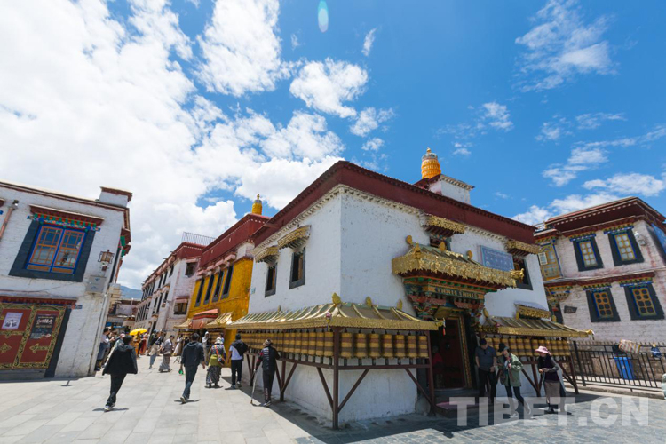 “先有大昭寺,后有八廓街”。拉薩古城的中心,大昭寺殿宇巍峨,凌空御風,桑煙繚繞,金碧輝煌。大殿里供奉的釋迦牟尼十二歲等身佛像,是文成公主從長安帶來的,佛教信教群眾將其視為心目中的至寶,從春到冬川流不息地圍繞著它轉經。千百年來,三條轉經路的中圈——八廓街,已成為全世界獨具特色和魅力的傳統(tǒng)文化街區(qū)之一。
