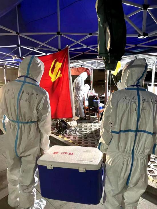 圖為黨旗飄揚(yáng)在核酸檢測(cè)點(diǎn)上攝影:普瓊