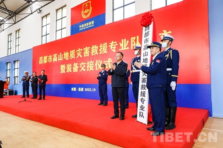 圖為昌都市高山地質(zhì)災(zāi)害救援專業(yè)隊(duì)成立暨裝備交接儀式現(xiàn)場