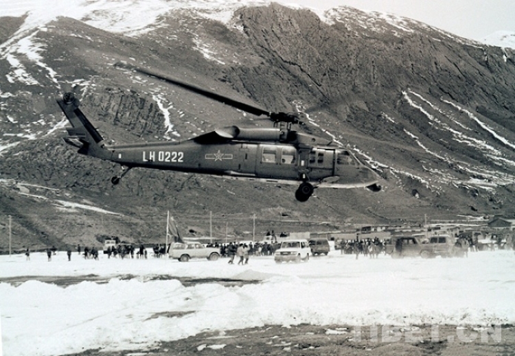 旋即,首都北京來(lái)電,中央派運(yùn)輸機(jī)救災(zāi)空投物資。3月27日,銀鷹展翅藏北高原,給被大雪圍困的牧民投下了糌粑、青稞、燃料、衣物和雪鏡等必需品。不幾日,中央又電令兩架“黑鷹”直升飛機(jī)投入到緊張的抗災(zāi)救災(zāi)工作中。