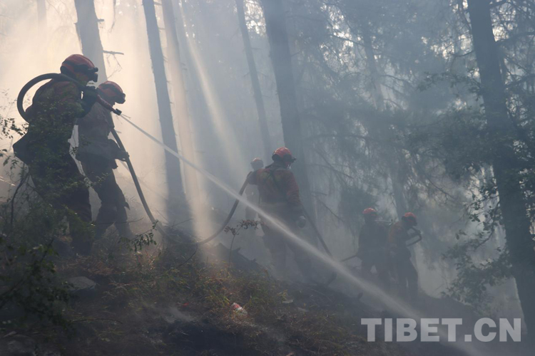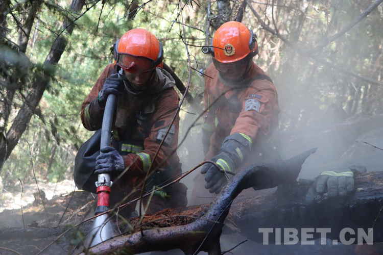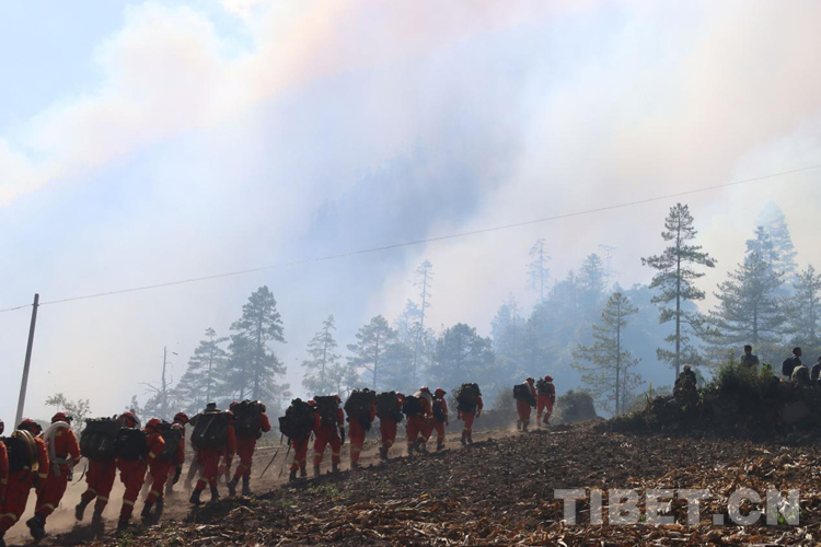 火場上,不說有感天動地的故事,但是那種“無畏火魔、不怕犧牲、舍我其誰、團(tuán)結(jié)協(xié)作”的故事卻到處可見。那天,我們在接警后,第一時間趕赴現(xiàn)場,當(dāng)看到一條長長的火線猶如一條蜿蜒的巨龍盤旋在空檔村山腰,火舌在大風(fēng)助威下翻滾著向南側(cè)撲去時,飛哥和我各帶領(lǐng)10名黨員骨干以南北兩翼夾擊的陣勢迎戰(zhàn)火魔。在高達(dá)2800米的原始林區(qū),夜里溫度接近-5℃,槍頭手高琪已全身上下濕透并伴隨冰片的出現(xiàn),隱約透著讓人冷顫的寒光,顫抖的身體讓槍頭不斷左搖右擺,但他毅然肩扛槍頭,勇斗火魔。撲救完畢后,剛要準(zhǔn)備休整,中隊接到殲滅山頂火點的任務(wù),火情就是命令,指戰(zhàn)員背著沉重的裝備在近70-80度的亂石陡坡上,抓著樹枝一步步向上攀爬,16年兵齡的王建紅在爬山過程中使勁喘息,即使空氣中彌漫著飛舞的灰,也為吸取更多的氧氣保持體力;接近山頂時,一顆直徑約80cm的滾石從山頂滾落,體型弱小的二級消防士曹橋在緊促的避險哨音中采取緊急避險措施成功躲避,滾石與他擦肩而過,但危險的環(huán)境未能抑制他戰(zhàn)斗的決心。中隊指戰(zhàn)員暢談此次滅火作戰(zhàn)感受時,都紛紛笑言:“我們從海拔2300米打到了3700米,相當(dāng)于從察隅到了拉薩。”31日,中隊轉(zhuǎn)戰(zhàn)火場西南線,此時經(jīng)過5天的連續(xù)奮戰(zhàn),指戰(zhàn)員的思考能力和興奮的感覺消失殆盡,只剩下機械式行走的軀體,膝蓋有舊傷的戰(zhàn)斗班班長王明因為超負(fù)荷運動已疼痛難忍,但他在咬牙堅持。班長宋遠(yuǎn)金、扎西歐珠主動擔(dān)當(dāng)不畏艱險,從不到2300多米的地方,背著滅火裝備和滿滿的水桶,爬到4000米的山頂排除隱患,清理煙點。