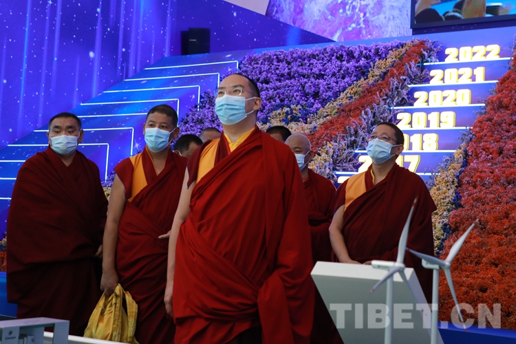圖為班禪在“奮進(jìn)新時代”主題成就展參觀 攝影:陳浩力