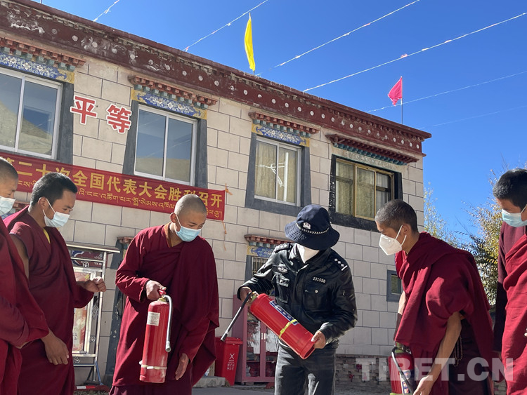 活動(dòng)中,管委會(huì)消防安全工作負(fù)責(zé)人結(jié)合近年來發(fā)生的火災(zāi)案例,圍繞寺廟消防安全工作的重要性,面對(duì)面用藏語講述了日常用火、用電、用氣注意事項(xiàng),文物保護(hù)單位存在的主要火災(zāi)隱患及消除火災(zāi)隱患的基本方法等。