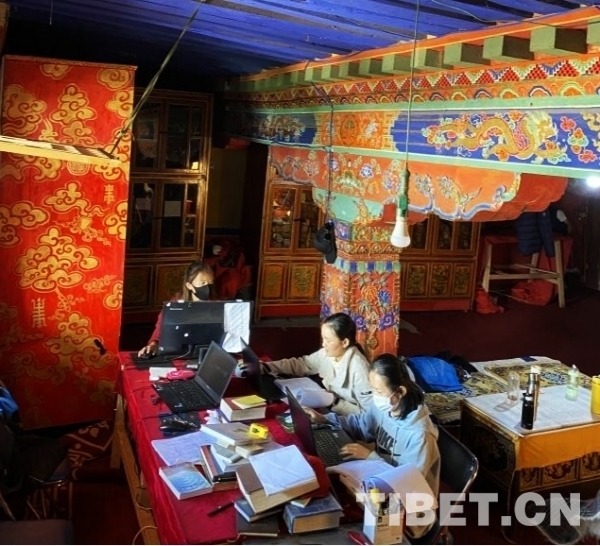 圖為2021年,西藏民族大學(xué)實(shí)習(xí)生對布達(dá)拉宮藏經(jīng)進(jìn)行記錄和統(tǒng)計(jì)