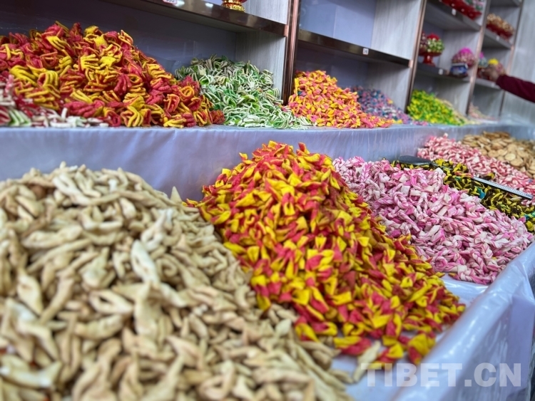 圖為年貨市場(chǎng)里的各類糖果 攝影:德吉卓瑪