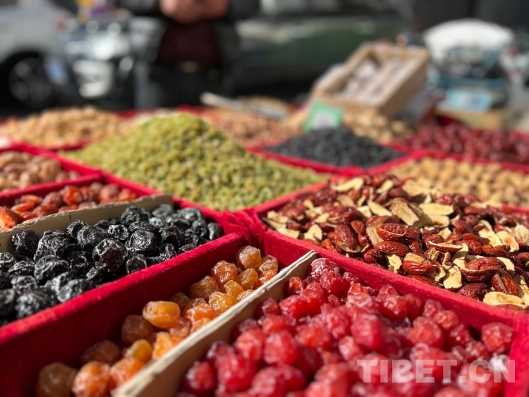 圖為年貨市場(chǎng)里的各類干果 攝影:德吉卓瑪