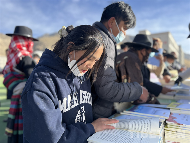 在送“書籍” 現(xiàn)場,《西藏文學(xué)》《西藏文藝》《邦錦梅朵》三個編輯部工作人員為現(xiàn)場群眾和當?shù)?span style="text-align: center; background-color: rgb(253,242,234)">干部贈送書籍,當?shù)厝罕姾蛯W(xué)生們紛紛前來翻看尋找自己喜歡的書籍,大家人手幾本書?!拔移綍r喜歡閱讀藏文文學(xué)作品,這次要了兩本文學(xué)相關(guān)書籍拿回家閱讀”17歲的益西巴珍說。據(jù)了解,此次活動西藏文聯(lián)向熱愛閱讀的群眾和學(xué)生共贈送1500本(冊)文藝書籍和期刊。