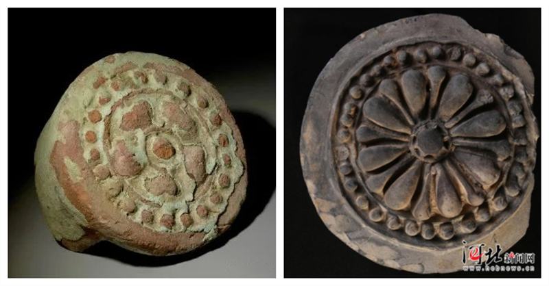 圖為西藏曲水溫江多遺址出土的綠釉紅陶帶筒瓦蓮花瓦當(dāng)(左圖片來源:國家文物局)與河北正定開元寺附近出土的唐代蓮花紋瓦當(dāng)(圖右圖片來源:燕趙都市報)紋樣對比
