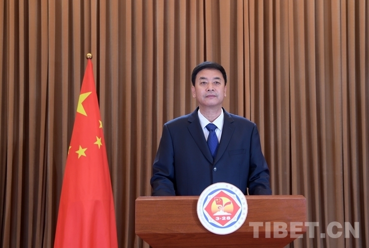 同志們,朋友們!64年滄桑巨變,64年黨恩如山。讓我們更加緊密地團結在以習近平同志為核心的黨中央周圍,深刻領悟“兩個確立”的決定性意義,增強“四個意識”、堅定“四個自信”、做到“兩個維護”,深入貫徹習近平總書記關于西藏工作的重要指示和新時代黨的治藏方略,踔厲奮發(fā)、勇毅前行、不懈奮斗,向著強國建設、民族復興的宏偉目標,向著西藏長治久安和高質量發(fā)展的壯美前景,不斷創(chuàng)造新的歷史、走向新的未來!