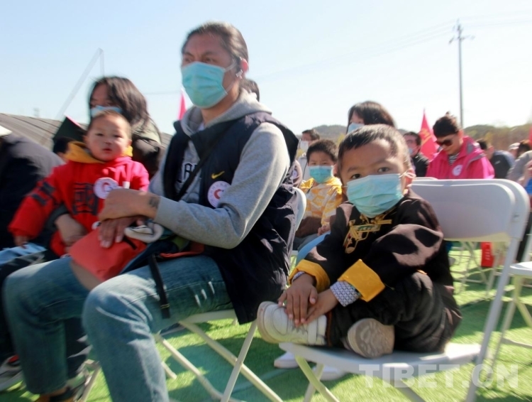 其中,3名剛剛手術(shù)痊愈出院、來(lái)自青海省果洛藏族自治州的患兒也參加了活動(dòng)。圖為來(lái)自青海省果洛藏族自治州的孩子們和他們的家屬一起參加活動(dòng)啟動(dòng)儀式 攝影:劉莉
