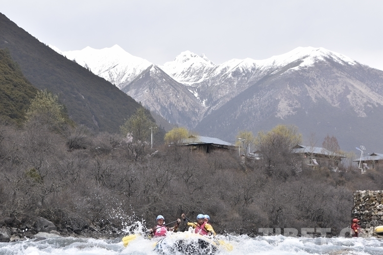 圖為4月16日,2.1公里激流漂流筏繞標(biāo)賽比賽現(xiàn)場攝影:次旦拉姆