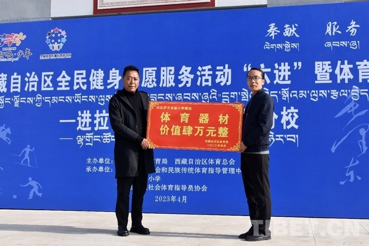 活動開幕式現(xiàn)場,西藏自治區(qū)體育局社體中心拉薩市實驗小學東城分校,配發(fā)了價值四萬的校園體育器材,保障學生日常體育運動需要。