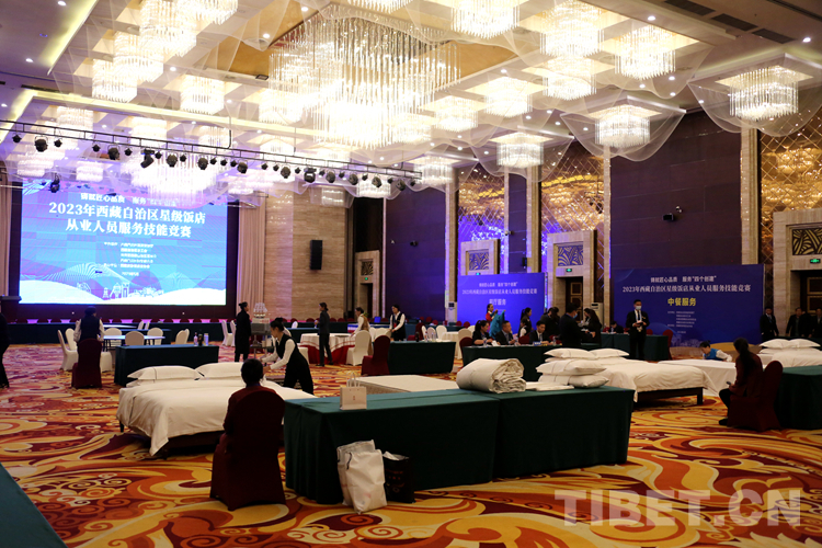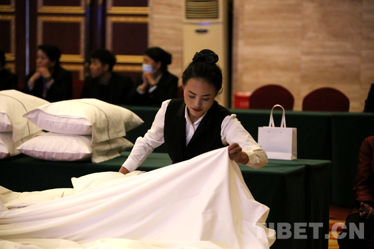 中國西藏網(wǎng)訊 5月11日,由西藏自治區(qū)旅游發(fā)展廳、西藏自治區(qū)總工會(huì)、共青團(tuán)西藏自治區(qū)委員會(huì)、西藏自治區(qū)婦女聯(lián)合會(huì)主辦,西藏旅游飯店業(yè)協(xié)會(huì)承辦的2023年西藏自治區(qū)星級(jí)飯店從業(yè)人員服務(wù)技能競賽在拉薩開賽。45名選手圍繞中餐宴會(huì)擺臺(tái)、西餐宴會(huì)擺臺(tái)、中式鋪床及夜床服務(wù)、前廳服務(wù)4個(gè)項(xiàng)目同臺(tái)競技。