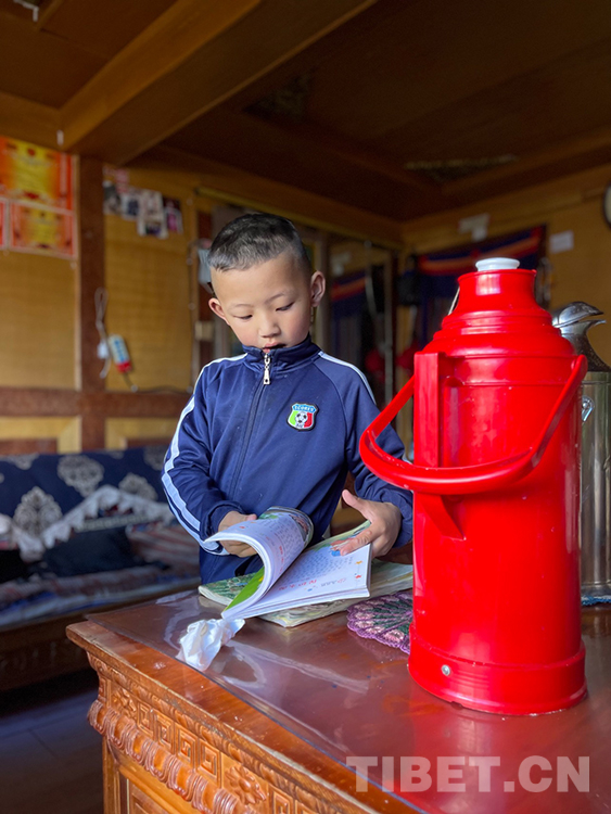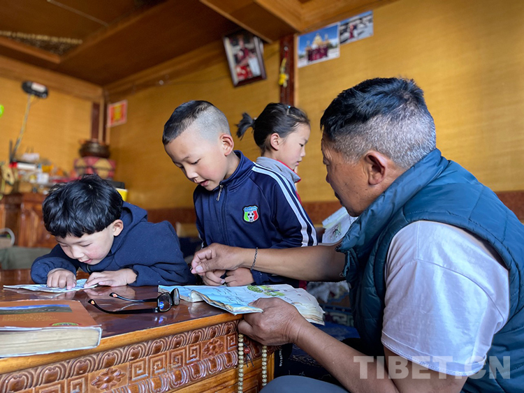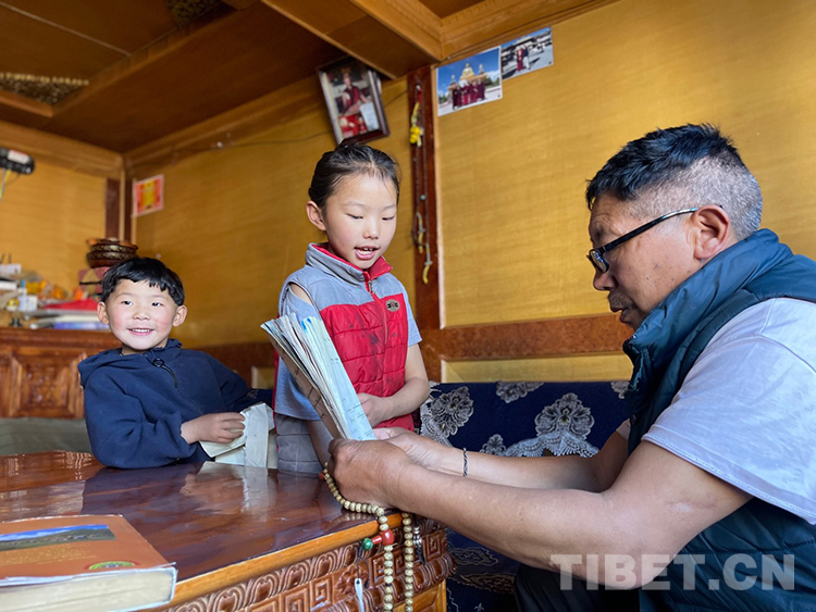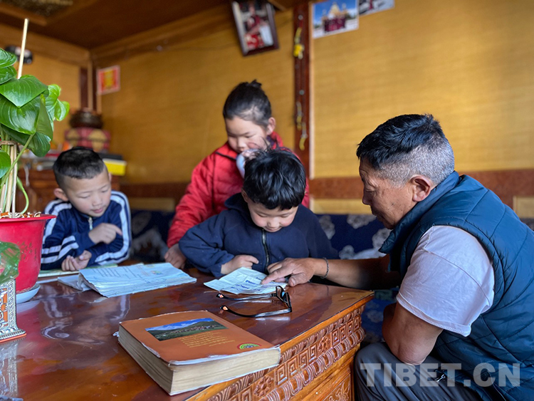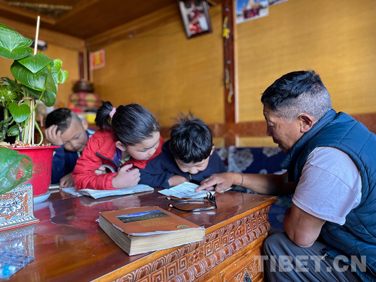 阿噶大爺自己粗通藏文,能督促和檢查藏文作業(yè),孩子們則非常享受爺爺驗(yàn)收他們的學(xué)習(xí)成果,每次都爭先恐后地請爺爺聽自己的發(fā)音和背誦是否準(zhǔn)確。平時(shí)老師還會安排上網(wǎng)課,因此不會耽誤他們的學(xué)業(yè)。