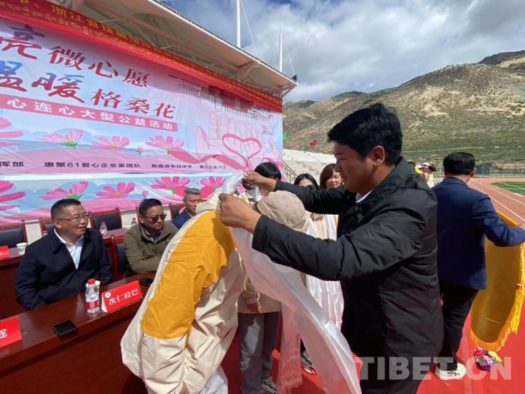 中國西藏網(wǎng)訊 6月19日,浙江金華市惠聚61愛心企業(yè)家團隊萬里送愛心,在西藏森布日中學(xué)舉行“點亮微心愿·溫暖格?;ā惫婊顒?。