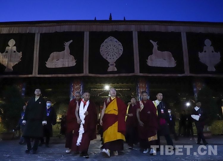 圖為禮佛完畢,班禪在晨曦中步出大昭寺 攝影:賈華加