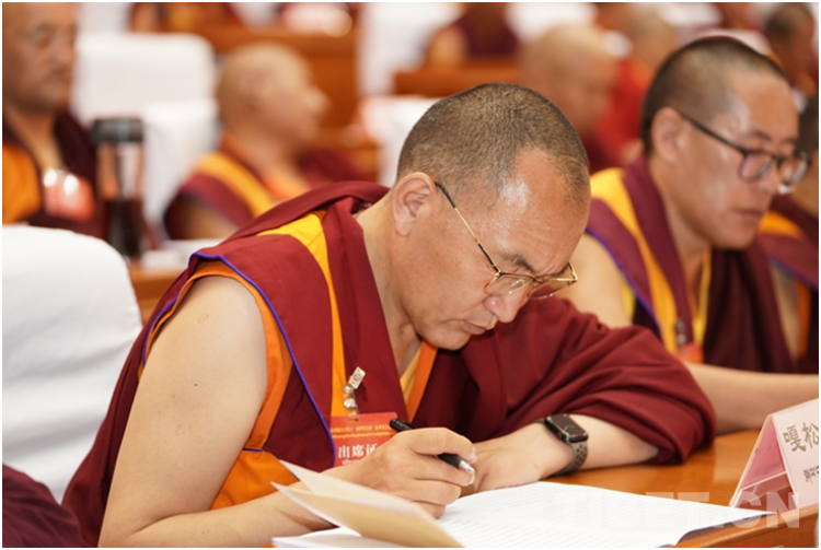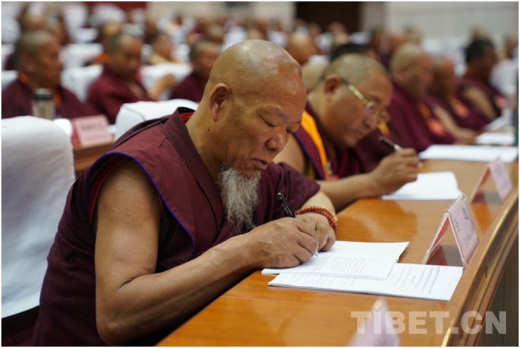 在安排部署下一步重點工作時,班禪表示,推動自我變革,開展教義教規(guī)闡釋。發(fā)揮藏傳佛教界人士在推進(jìn)中國化中的主體作用,推動沿著中國化方向健康傳承,引導(dǎo)藏傳佛教界人士切實增強自我變革的思想和行動自覺,以社會主義核心價值觀為引領(lǐng),在保持基本信仰、核心教義的前提下,促進(jìn)教義教規(guī)、管理制度、禮儀習(xí)俗、行為規(guī)范等方面逐步形成中國特色。實施藏傳佛教教義教規(guī)闡釋工程。引導(dǎo)藏傳佛教界對教義教規(guī)、藏傳佛教經(jīng)典選優(yōu)擇重、去粗取精、推陳出新,作出與中國國情、中華文化、中國特色社會主義相適應(yīng)的通俗易懂、與時俱進(jìn)地闡釋。引導(dǎo)藏傳佛教界人士在闡釋經(jīng)典、講經(jīng)說法、日常生活中學(xué)習(xí)使用國家通用語言文字,開展經(jīng)典翻譯、選編、注釋,挖掘教義思想中積極因素。爭做精進(jìn)修學(xué)、推進(jìn)藏傳佛教健康傳承的好僧尼,爭做守法遵規(guī)、弘揚濟世利民優(yōu)良傳統(tǒng)的好僧尼,爭做立場堅定、堅決維護(hù)祖國統(tǒng)一和民族團結(jié)的好僧尼。