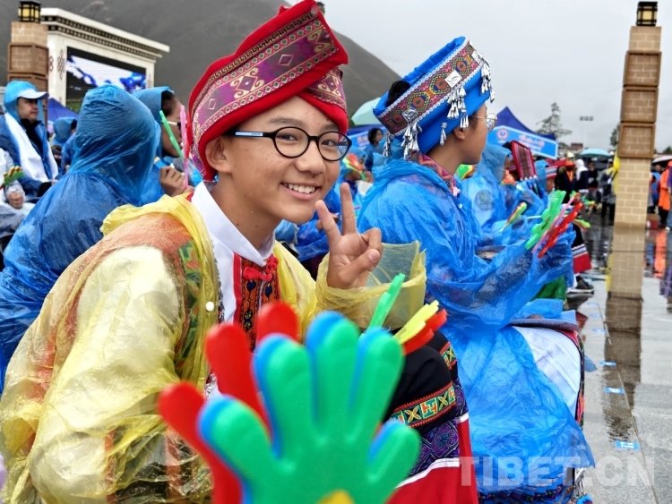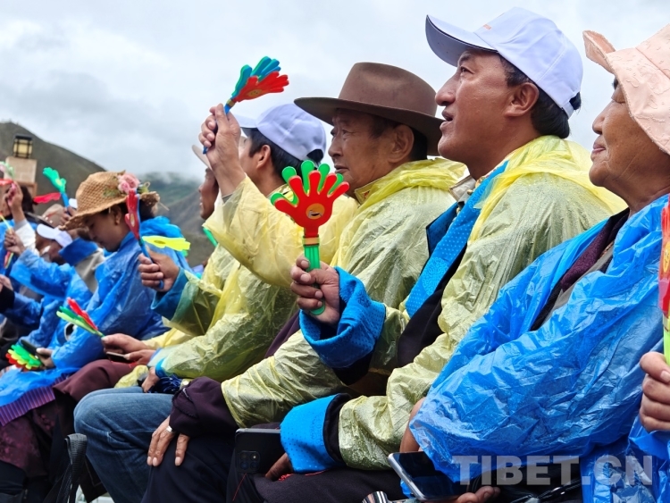 當(dāng)天上午,雨水時(shí)急時(shí)緩下著。當(dāng)?shù)孛癖姄沃鴤恪⑴暌略缭缏渥却莩鲩_始。白瑪次仁是附近的村民,他告訴記者:“我平時(shí)就喜歡唱歌和跳舞,所以收到有文藝演出的通知就早早過來(lái)觀看,畢竟平時(shí)很少看到如此大型的演出。”