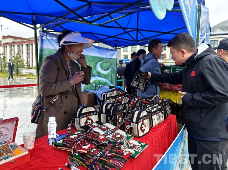 圖為活動(dòng)現(xiàn)場(chǎng)市民在詢問展銷產(chǎn)品價(jià)格 攝影:次旦拉姆