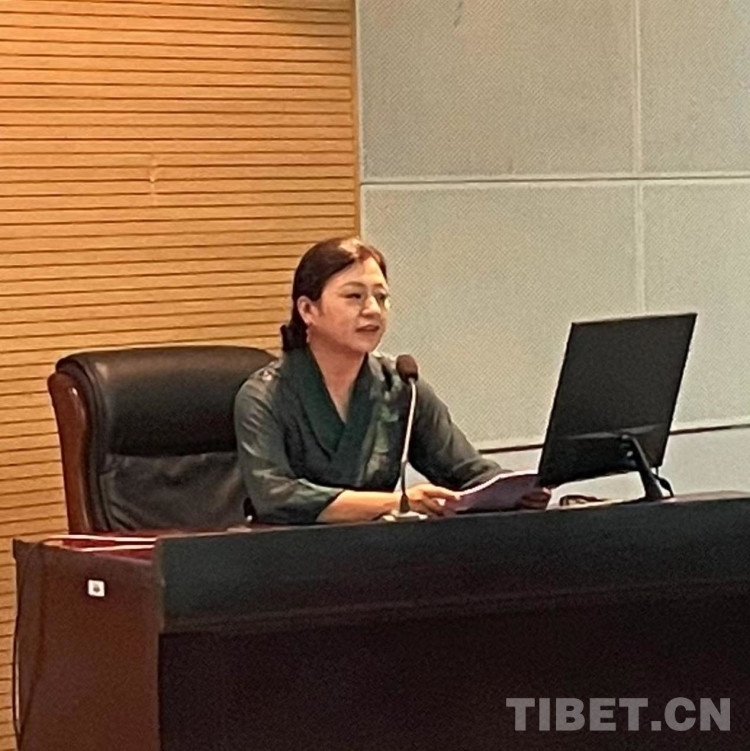 圖為青海省社會(huì)科學(xué)院藏學(xué)研究所副研究員罡拉卓瑪作主旨發(fā)言。攝影:鹿方舟