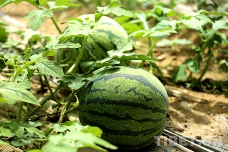 圖為措勤縣產(chǎn)業(yè)園區(qū)蔬菜大棚種植的西瓜 攝影:王佳豪