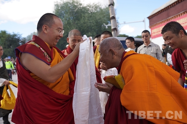 圖為扎什倫布寺高僧代表向班禪敬獻哈達 攝影:王淑