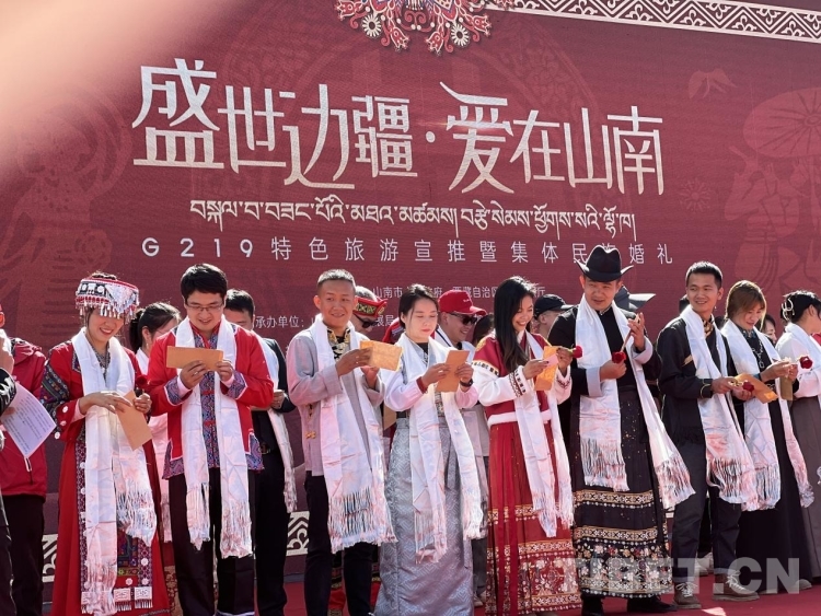 參加此次集體婚禮的新人中有來自北京、廣西、長沙、重慶等區(qū)外的游客,也有來自G219沿線縣(區(qū))的山南當?shù)厍閭H,有漢族、藏族、彝族、苗族、回族等不同民族通婚的情侶、夫妻,他們年紀有別、身份不同、職業(yè)各異,卻都選擇來到山南奔赴這場浪漫之旅。在接下來的六天,他們將陸續(xù)前往山南市加查縣、隆子縣、措美縣、洛扎縣及浪卡子縣,在欣賞大美邊疆風光、領略特色民族風情的同時,感受中華民族一家親的團結精神。