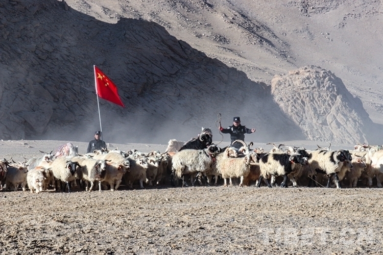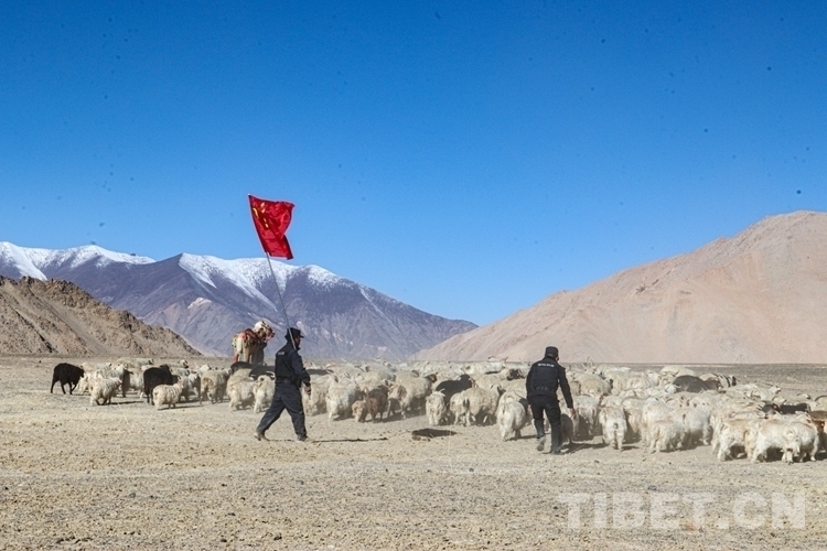圖為阿里邊境管理支隊(duì)日土邊境派出所民警組成護(hù)牧隊(duì)幫助牧民轉(zhuǎn)場