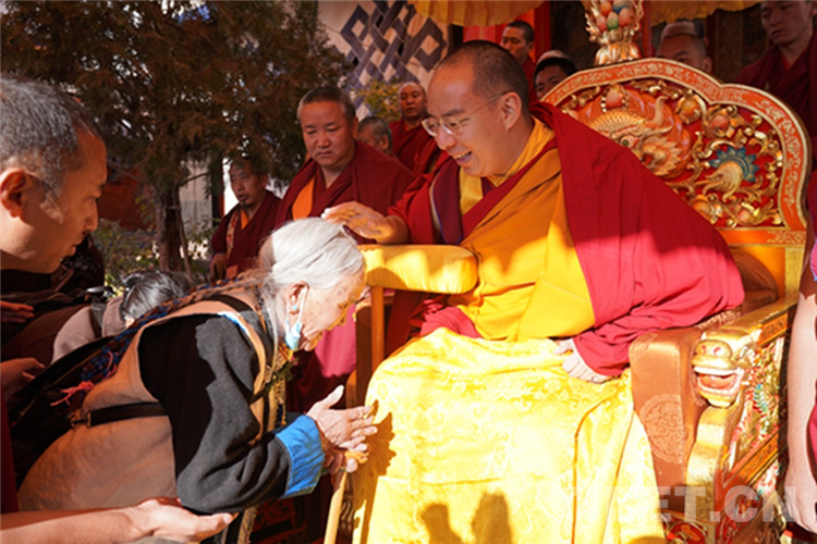 中國西藏網(wǎng)訊 11月13日至14日,全國政協(xié)常委、中國佛教協(xié)會副會長、中國佛協(xié)西藏分會會長班禪額爾德尼?確吉杰布在西藏日喀則市扎什倫布寺多加大院為信教群眾摸頂賜福,這是近年來規(guī)模最大的一次班禪摸頂賜?;顒印D為班禪摸頂賜福 攝影:王淑(中國西藏網(wǎng) 記者/王淑 賈華加)