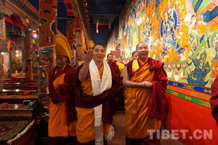 在瓊布·阿旺強巴堅贊活佛引領下,班禪依次朝拜主殿懺悔殿、主供佛殿、度母殿、護法神殿、舊杜康殿,參觀文物陳列室,前往寺廟辯經(jīng)場觀摩僧人辯經(jīng),并就扎西吉培寺“三個意識”教育開展情況和僧人綜合考評機制有關情況進行調研。