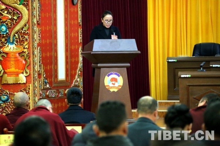 圖為強巴措珍在拉薩市政協(xié)第十二屆四次會議第二次全體會議上發(fā)言 攝影:王佳豪