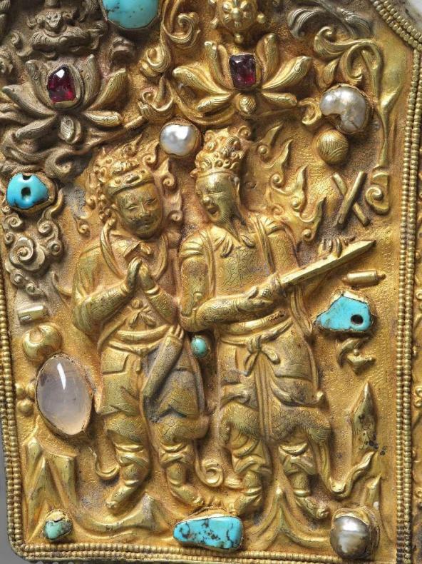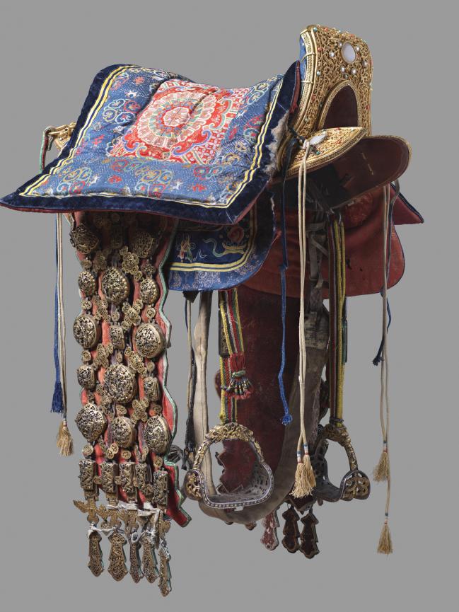 圖為公元18~19世紀嵌寶石鎏金銀馬鞍