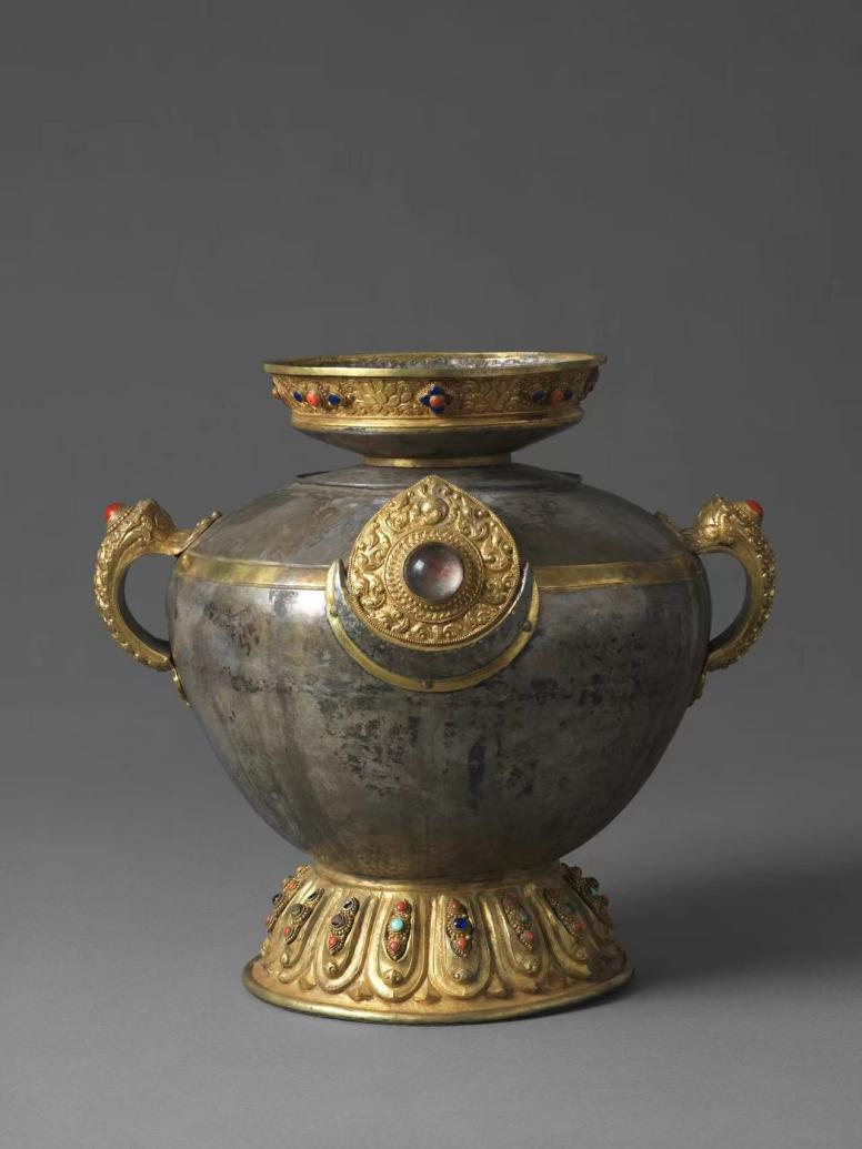 圖為公元18世紀鎏金嵌寶石雙耳甕