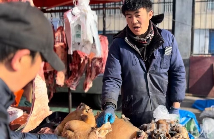 五一早市上,市民在與肉鋪老板砍價(jià) 攝影:李一凡