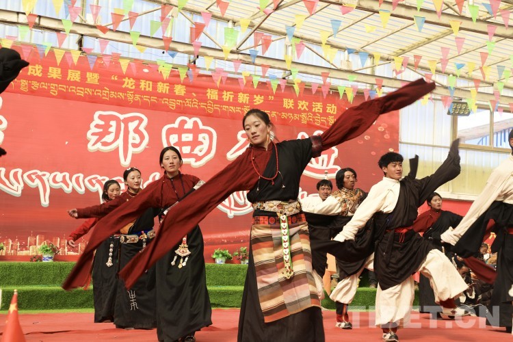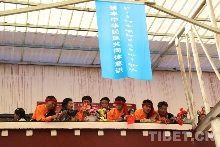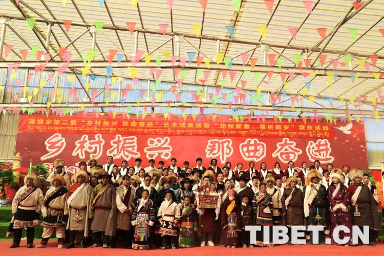 中國西藏網(wǎng)訊 2月10日,中國西藏信息中心“新春走基層”青藏線采訪組一行,來到西藏自治區(qū)那曲市安多縣灘堆鄉(xiāng),適逢當(dāng)?shù)卦谂e辦灘堆鄉(xiāng)第二屆“鄉(xiāng)村振興 那曲奮進”藝術(shù)成果展暨“龍和新春、福祈新歲”聯(lián)歡活動。采訪組一行來到鄉(xiāng)政府對面的灘堆鄉(xiāng)文化站,記者在現(xiàn)場看到許多穿著具有當(dāng)?shù)孛褡逄厣椀娜嗽诖司奂?。在好奇心的?qū)使下,經(jīng)詢問當(dāng)?shù)馗刹坎胖?,為喜?024春節(jié)和藏歷新年,感激黨和國家的關(guān)心關(guān)懷,歌頌如今來之不易的幸福生活,鄉(xiāng)村文藝隊特此精心準(zhǔn)備了文藝節(jié)目,以嶄新的面貌和昂揚的精神展現(xiàn)新時代牧民群眾的精神風(fēng)貌和幸福生活。