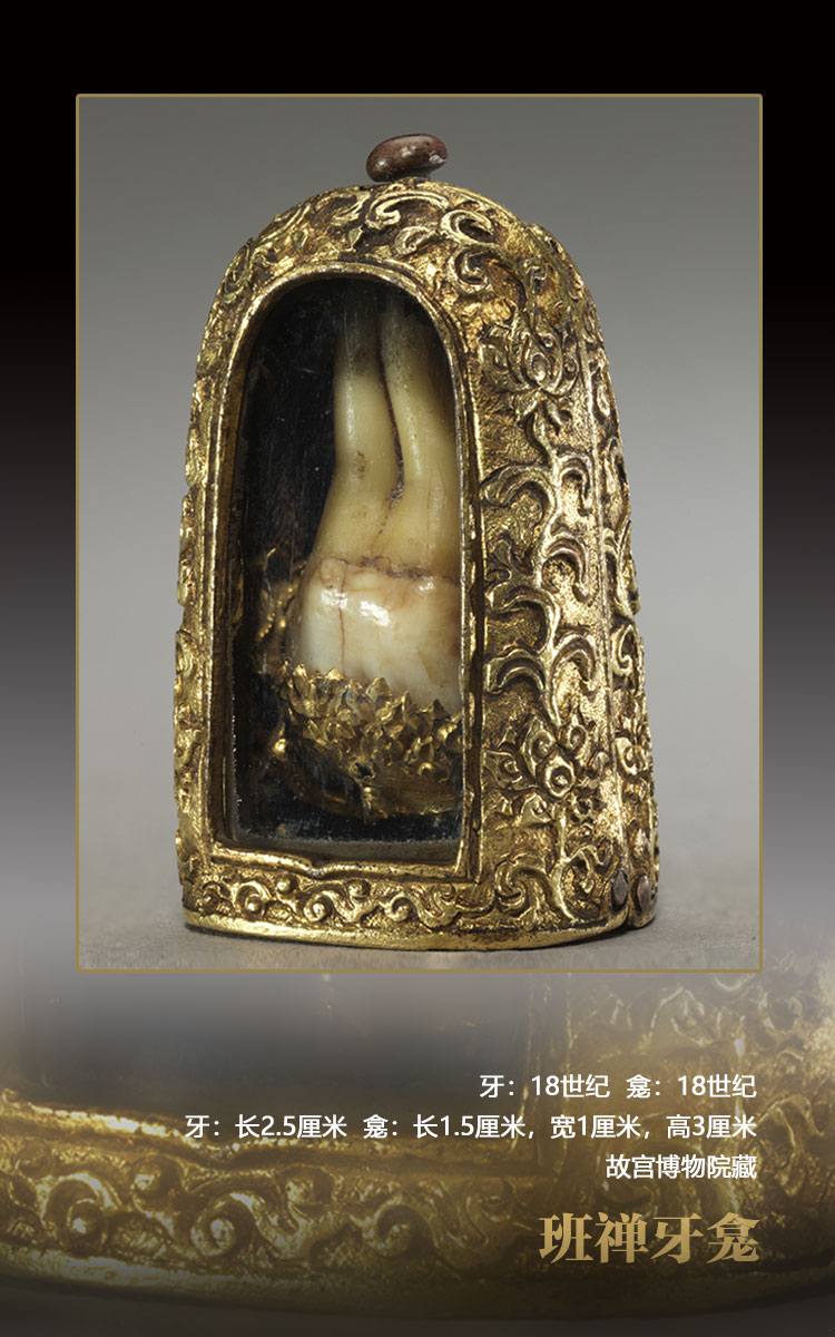 佛教世界的傳統(tǒng)觀念認為,牙也是舍利的一種。在藏傳佛教中,上師火化后留下的牙、骨等均視為神圣之舍利,或供于佛堂,或葬于佛塔內,永久禮拜。這顆班禪牙也應視為班禪最神圣的法物——舍利來看待。