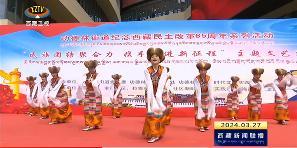 圖為西藏自治區(qū)拉薩市功德林街道開(kāi)展文藝匯演活動(dòng) 圖源:西藏衛(wèi)視